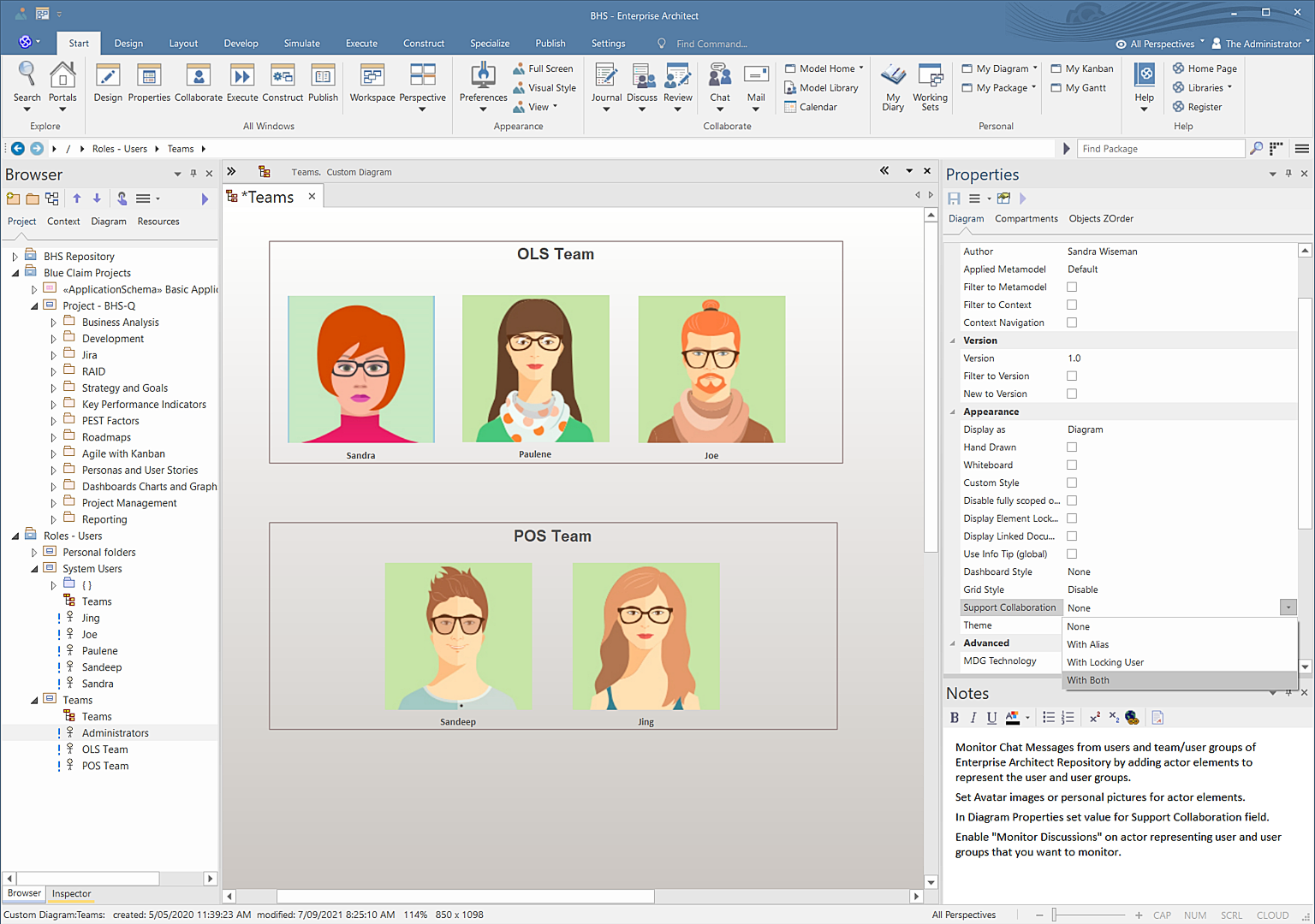 Un référentiel unique pour les analystes métier, les architectes logiciels, les développeurs, les chefs de projet, les testeurs, le personnel de déploiement et de support. Une vue "unifiée" d'un système complexe comportant de nombreux points de vue et de nombreux sous-systèmes possibles. Les modèles partagés sont accessibles facilement et en toute sécurité par les membres de l’équipe distante avec Pro Cloud Server et Enterprise Architect.
